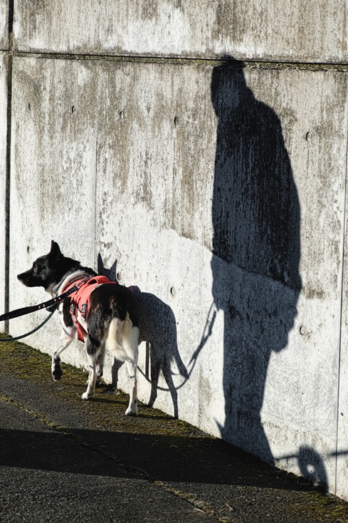 わんこが人の影と散歩しているようで、お気に入りです。