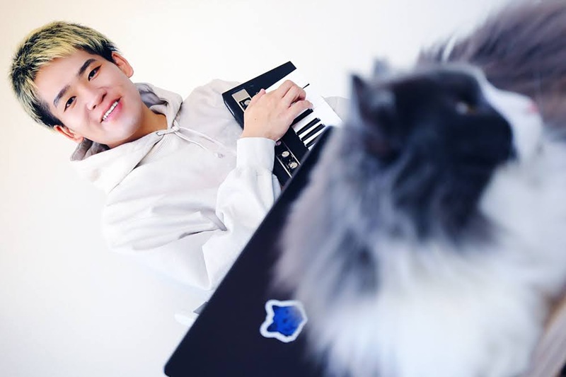 ちなみに、手前に写っているのは彼の愛猫のモプちゃんです。